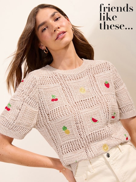 Friends Like These Fruit Embroidered Knitted Top