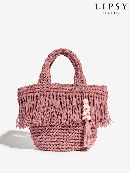 وردي - Lipsy Fringe Raffia Effect Beach Bag