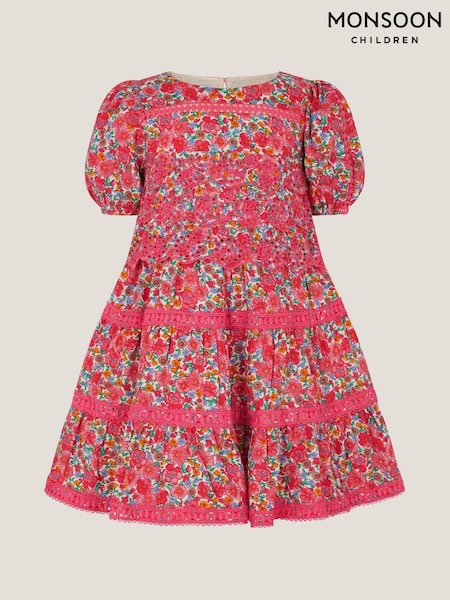 فستان بطبقات مع تطريز زهور وأكمام منفوخة من Monsoon