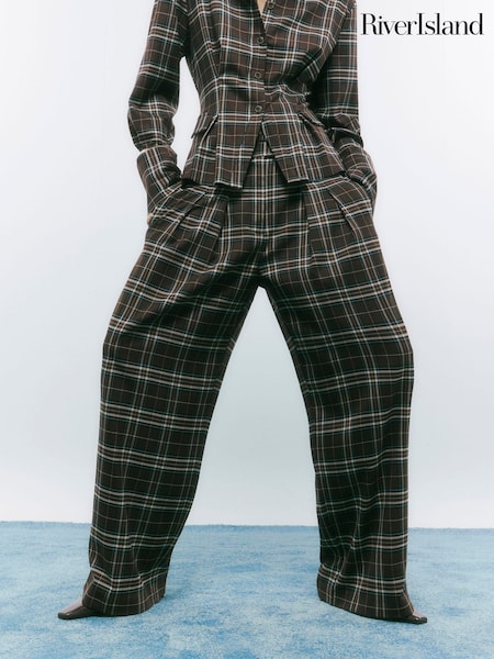 بنطلون برِجل واسعة بنقشة مربعات من River Island