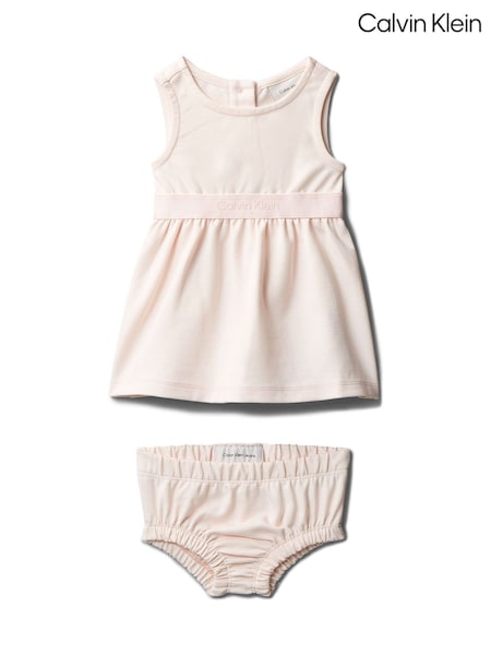 فستان لون كريمي بشعار من Calvin Klein Jeans