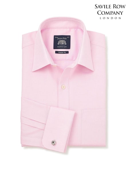 قميص رسمي من القطن بتلبيس كلاسيكي وخيوط نسيج متعاكسة وأساور مزدوجة من Savile Row Company