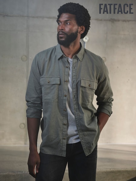 أخضر شاحب - FatFace Long Sleeve Garment Dye Utility Shirt