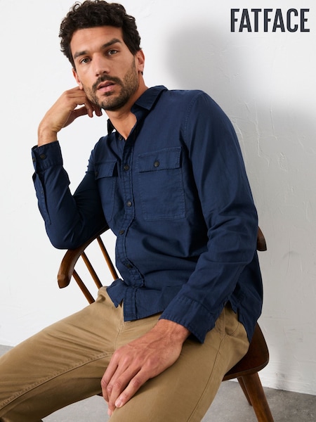 أزرق داكن - FatFace Long Sleeve Garment Dye Utility Shirt