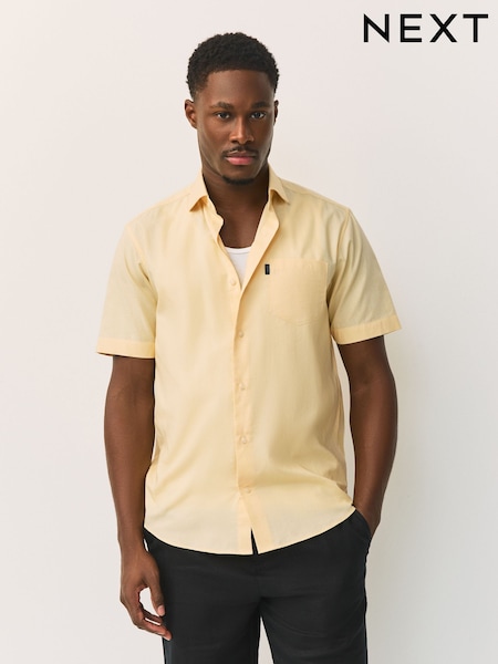 أصفر - تلبيس قياسي - قميص أكسفورد بكم قصير وأزرار سهل الكي