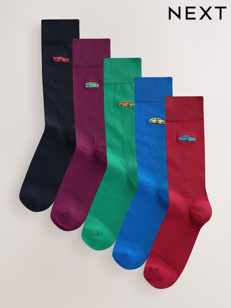 Blue/Green/Red Car - حزمة من 5 جوارب Fun المطرزة