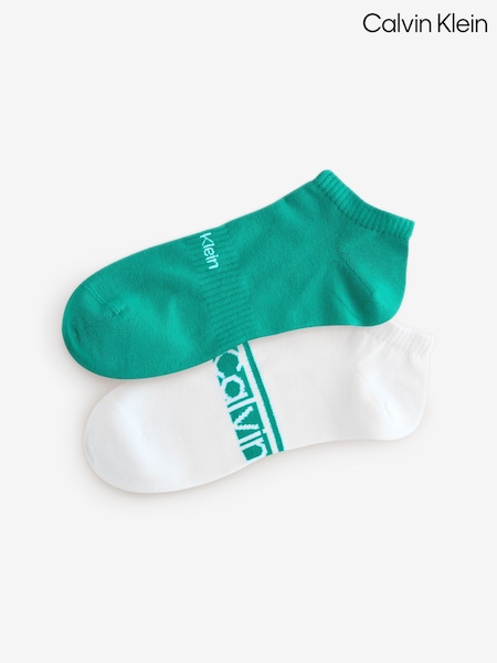 أخضر - Calvin Klein Cotton Logo Stripe Trainer Socks 2 Pack