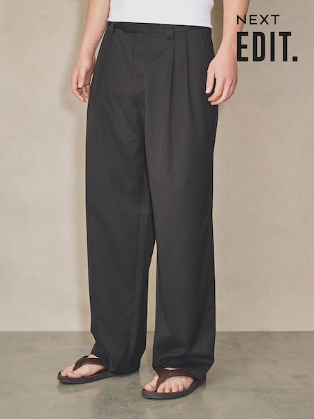 بني - EDIT Pleated Relaxed Fit Smart Trousers