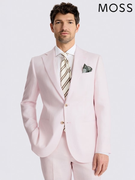 وردي - سترة بدلة بملمس بارز من مزيج من الكتان