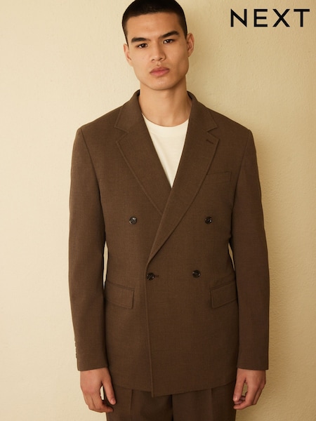 بني - Relaxed Fit Double Breasted Seersucker Texture Suit Jacket