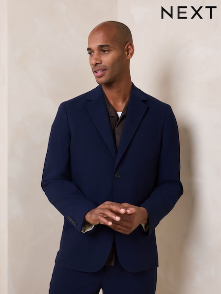 أزرق داكن - Relaxed Fit Seersucker Texture Suit Jacket