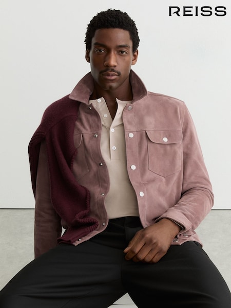 سترة بومبر سويد بأكمام جلد Block من Reiss