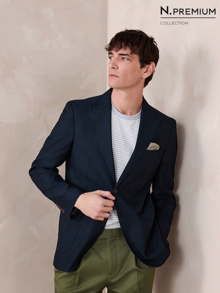 أزرق داكن أزرق - N. Premium Textured Blazer With TENCEL™ Lyocell and Linen
