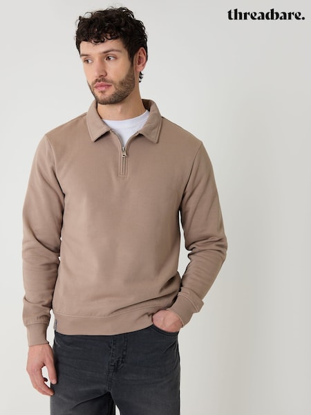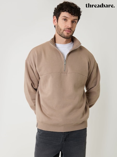 بني - سويت شيرت بنصف سحاب بقصة مريحة من Threadbare