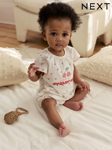 White Cherry Embroidered I love my Mummy - رومبر بيبي جيرسيه