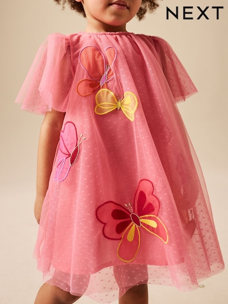 فراشة كورال - فستان شبكي بأكمام انسيابية (3 أشهر - 7 سنوات)