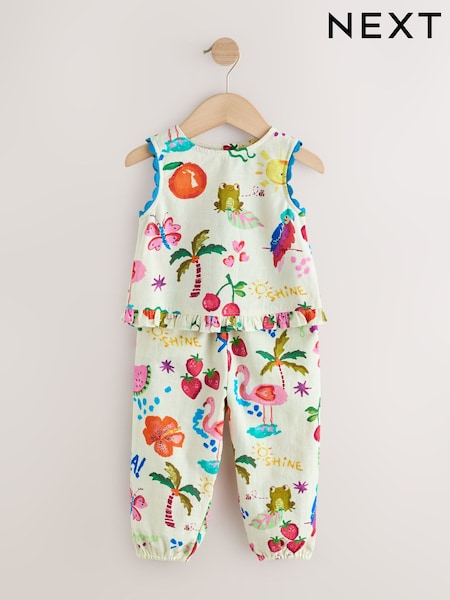 طبعة استوائية صيفية زاهية - طقم من رداء عُلوي وبنطلون بحاشية (3 أشهر - 7 سنوات)