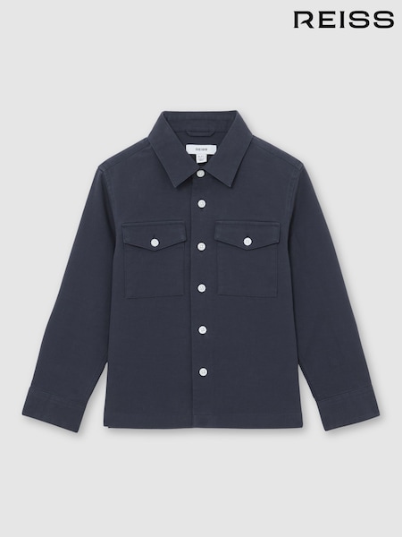 أزرق داكن - Reiss Isle Cotton Button-Through Overshirt