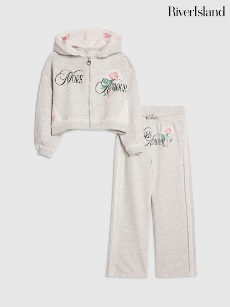 طقم بدلة رياضية من هودي وبنطلون رياضي بعبارة "More Amour" من River Island
