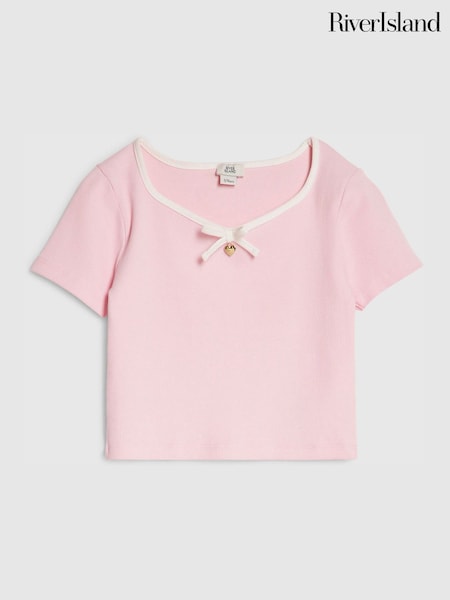River Island Older Ribbed Sweetheart Bow T-Shirt