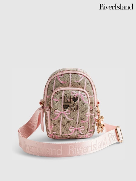 River Island Bow Monogram Festival Crossbody Bag