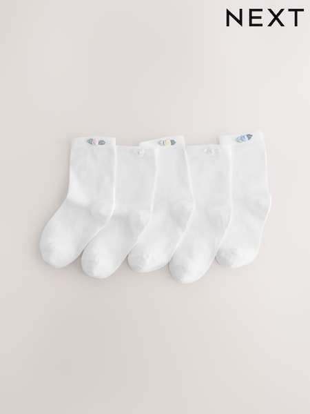 أبيض - Cotton Rich Ankle Socks with Rose Detail 5 Pack