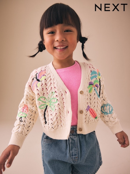 بيج فاتح - Fluro Embroidered Crochet Cardigan (3mths-7yrs)