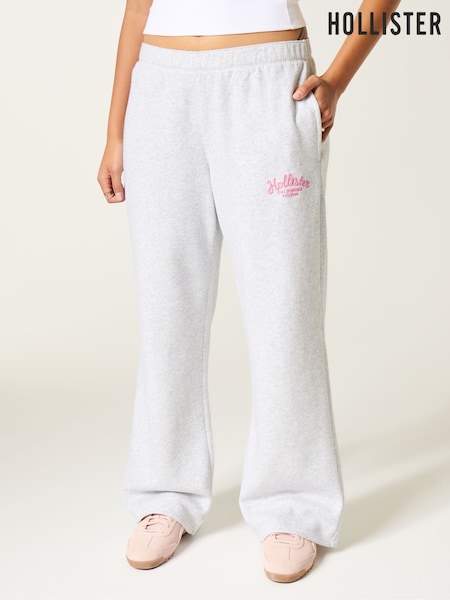 رمادي فاتح - Hollister Feel Good Wide Leg Logo Graphic Sweatpant Joggers