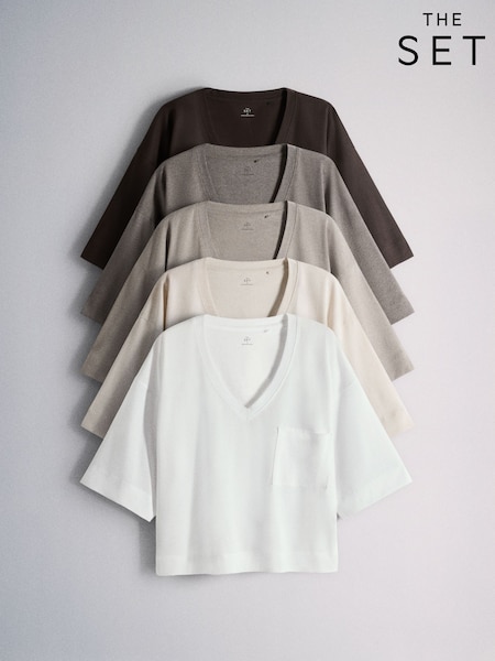 The Set 5 Pack V-Neck Essential Pocket T-Shirts