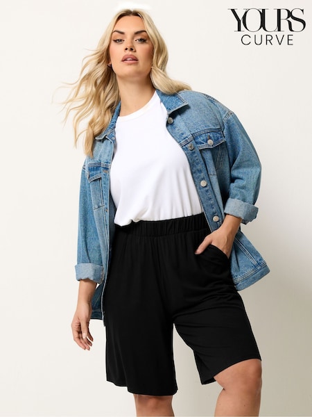أسود - شورت جيرسيه سهل اللبس مقاس كبير من Yours Curve