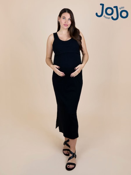 أسود - فستان ماكسي مضلع مخطط بتصميم بلا أكمام للحوامل والرضع من Jojo Maman Bébé