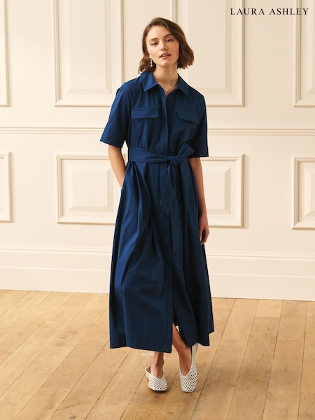 فستان ماكسي متوسط الطول مصنوع من خامة %100 قطن مُزيَّن بطبعة زهور صغيرة الحجم مستوحاة من الطراز الريفي من Laura Ashley