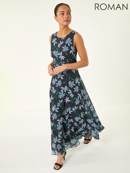 فستان شيفون برقبة كبيرة وطبعة موردة من Roman
