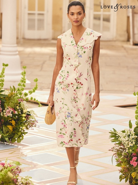 فستان متوسط الطول بطبعة ورود Kaia من Monsoon