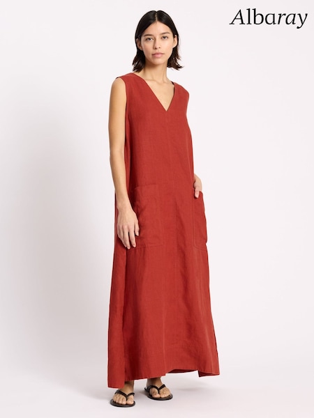 أحمر - فستان Arabella من مزيج الكتان من Boden