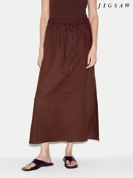 بني - Jigsaw Linen Drawstring Maxi Skirt