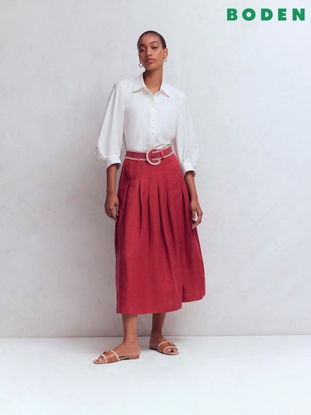 بني مائل للأحمر - تنورة قصّة مستقيمة من الكتان