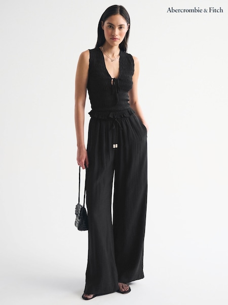 أسود - Abercrombie & Fitch Crinkle Pull-On Trousers