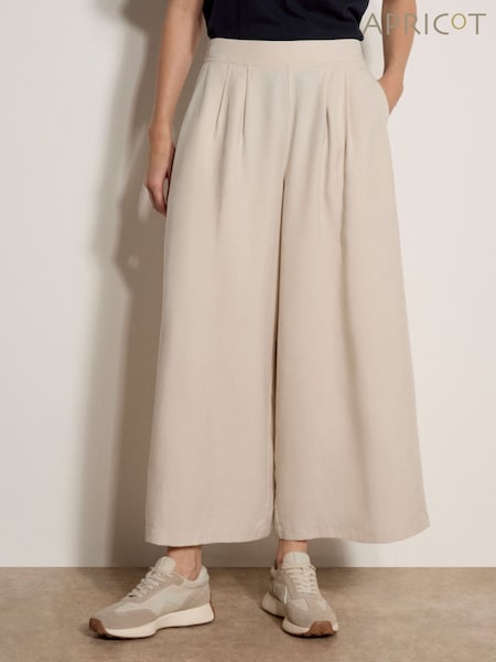 لون طبيعي - Apricot Slub Linen Wide-Leg Trousers