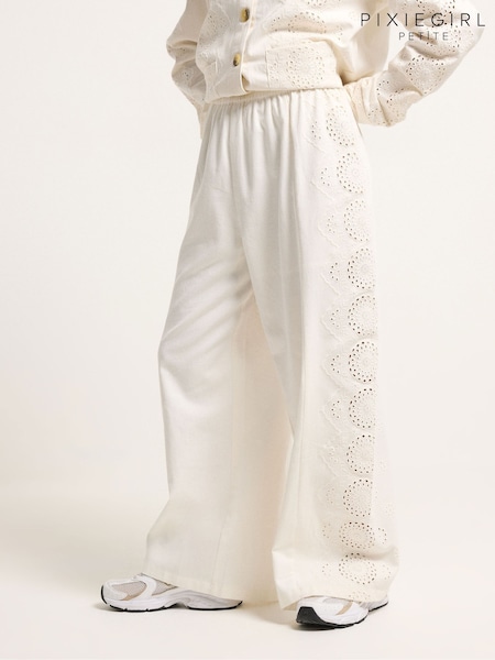 PixieGirl Petite Broderie Pull On Wide Leg Trousers