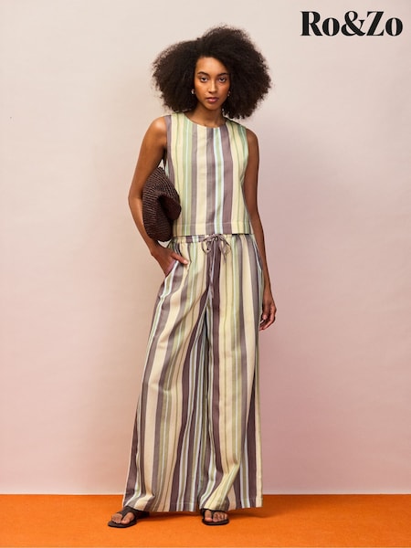 Ro&Zo Stripe Wide Leg Trousers With Linen
