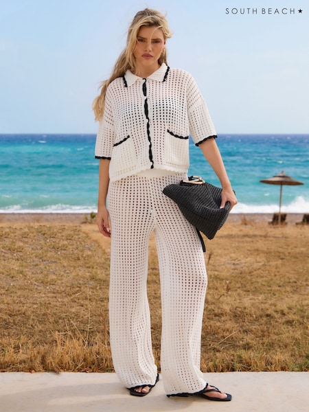 South Beach Crochet Knit Cuff DetailWide Leg Trousers