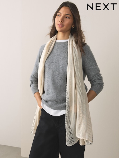 كريم - Sparkle Mono Stripe Lightweight Scarf