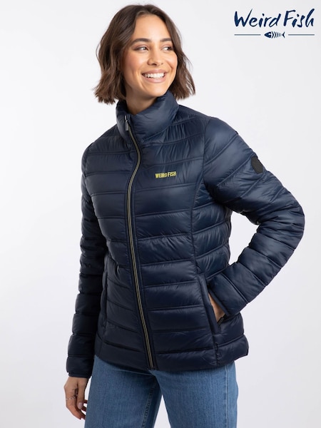 أزرق - Weird Fish Travellia Lightweight Showerproof Padded Jacket