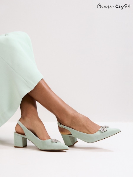 أخضر - حذاء بكعب عريض لامع من Phase Eight