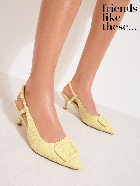 جلد صناعي أصفر - حذاء Court أنيق بكعب منخفض وتصميم Slingback مع تفصيلة إبزيم من Friends Like These