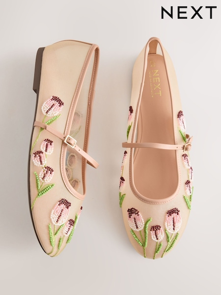 بيج - Forever Comfort® Mesh Tulip Maryjanes