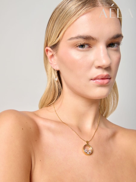قلادة بتصميم سلسلة متعددة الطبقات مزينة بحلية بيضاوية بلون ذهبي من Aela
