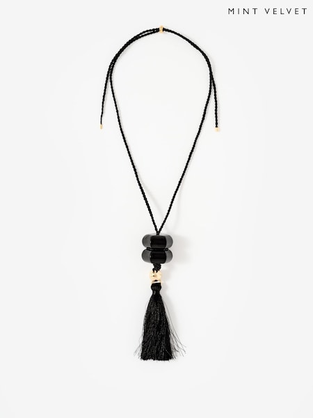 Aela Fabric Cord Tassel Black Necklace