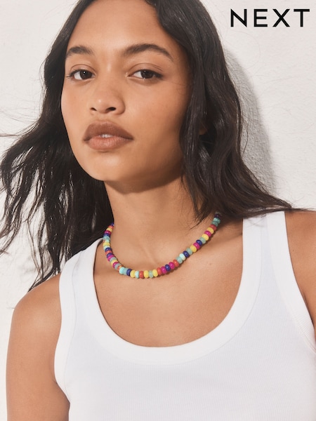 ألوان متعددة - قلادة خرز زاهية